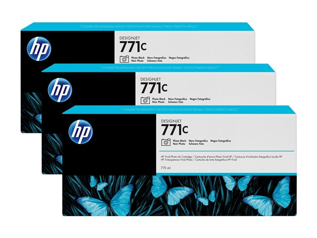 HP 771C - 3-pack - 775 ml - foto-svart - original - bläckpatron - för DesignJet Z6200, Z6600, Z6610, Z6800, Z6810 B6Y37A