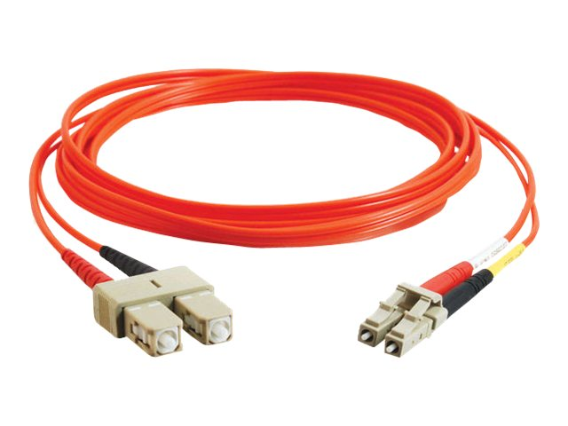 With LC to SC termination, this high-quality fiber optic patch cable is specifically designed for fast ethernet, ATM and gigabit ethernet applications. The small LC connectors satisfy the need for higher port density both in the telecom room and the work area, and offer twice the port density of traditional SC and ST fiber connectors. The LC connector with its RJ-style latch clip design is easy to engage and disengage, and gives each connection greater durability in resisting pulls, strains, snags, and impacts during cabling installs and maintenance. The ST connector features a bayonet locking system.
