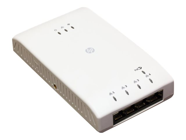 HP 517 Unified Walljack integrates GbE wired ports, and 802.11ac wireless connectivity into a low-profile design that can be quickly installed in a standard wall outlet box. It provides four GbE ports, a dual band 802.11a/b/g/n/ac wireless access point and a pass-through RJ-45 connection to support a range of services and connectivity options. One Ethernet port can be configured as an IEEE 802.3af-compliant PSE port for powering devices such as IP telephones. The HP 517 Unified Walljack requires a single Power over Ethernet (PoE) cable drop and provides wireless coverage for one or more rooms.