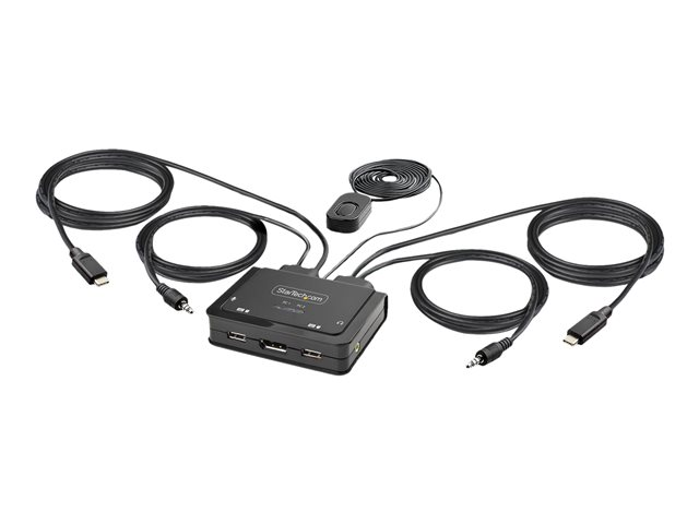 StarTech.com 2-Port USB-C Cable KVM Switch, 4K 60Hz DisplayPort Output, Compact KVM with 4ft/1.2m USB Type-C/Audio Integrated Cables, Bus Powered - Remote Push-Button/Hotkey Switching (C2-D46-UC2-CBL-KVM) - Omkopplare för tangentbord/video/mus/ljud - kompakt - 2 x KVM/ljud - 1 lokal användare - skrivbordsmodell C2-D46-UC2-CBL-KVM