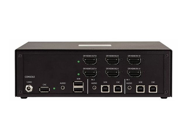 | Gränssnitt | 3 x USB 2.0-utgång Type A 2 x DisplayPort 2 x HDMI Ljud/hörlurar telefon stereo 3,5 mm hona 4 x DisplayPort hona 4 x HDMI 2 x ljud/hörlurar telefon stereo 3,5 mm 4 x USB 2.0 Type B |