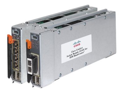 The Cisco Catalyst switch module 3110G is Gigabit Ethernet switch modules in a standard switch-bay form-factor for use in all BladeCenter chassis. These stackable switches are full wire-rated, nonblocking switches for use with high-performance servers. The 3110G offers four external RJ-45 Gigabit Ethernet connections.