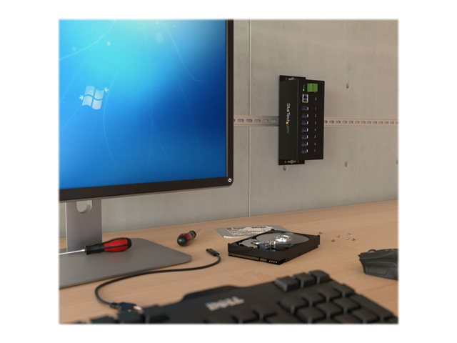 StarTech.com USB 3.0-hubb med 7 portar - Industriell USB-A-hubb i metall med ESD-skydd och 350 W överspänningsskydd - Monterbar på DIN-skena, vägg eller skrivbord - TAA-kompatibel USB-expansionshubb - Hubb - 7 x SuperSpeed USB 3.0 - DIN-skenmonterbar, väggmonterbar - likström - för P/N: ITB20D3250, USB312SAT3CB, USB315CB2M, USBLT1MWS, USBLT2MBR, USBLTM1MBK, USBLTM1MWH