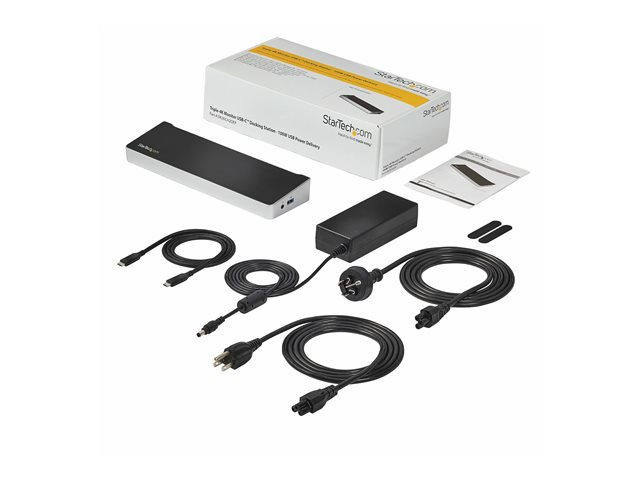 StarTech.com 4K USB-C-docka för tre skärmar med 5 USB 3.0-portar - 100W PD - Dockningsstation - USB-C - HDMI, DP - 1GbE - 100 Watt - TAA-kompatibel