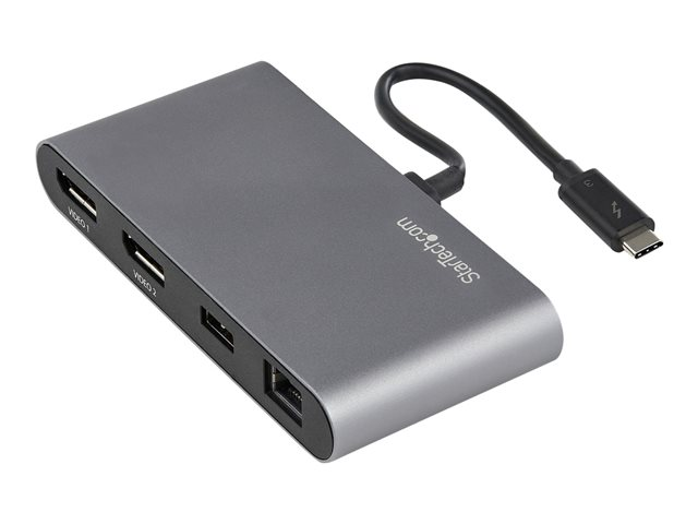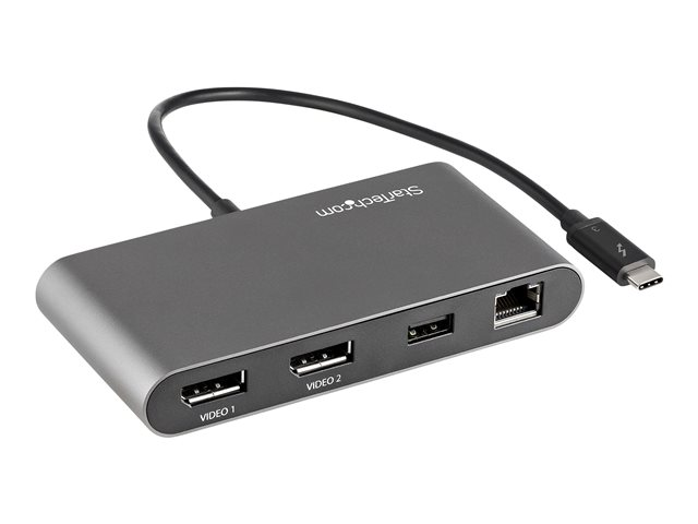 StarTech.com Thunderbolt 3 Mini Dock - Portable Dual Monitor w/ DP 4K 60Hz - 2X USB-A Hub (3.2/2.0), GbE - 28cm Cable - TB3 Multiport Adapter - Mac/Windows - Upgraded Version of TB3DKM2DP (TB3DKMDPL) - Dockningsstation - Thunderbolt 3 - 2 x DP - 1GbE TB3DKM2DPL